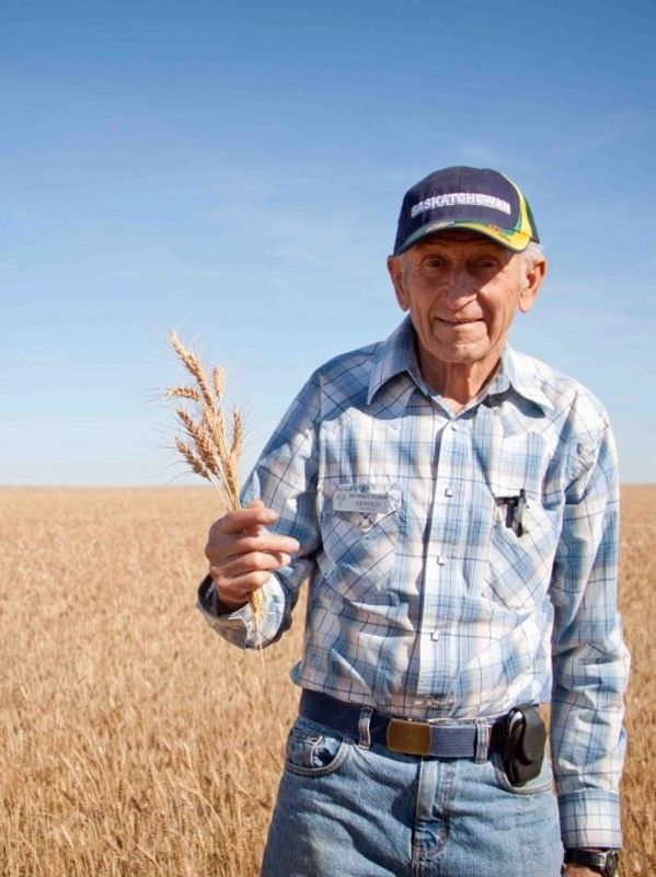 Arnold Schmidt, shown in the picture, at the age of 93, still actively farming and involved with the flour mill. A testament to hard work and healthy grains.